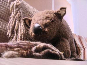 - Bubba was driving behind a vehicle with a wounded in combat/purple heart bumper sticker. He somehow read it as “wombat.” I made this as an inside joke.